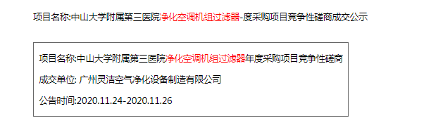 恭喜我司中標中山大學附屬第三醫(yī)院凈化空調(diào)機組過濾器年度服務