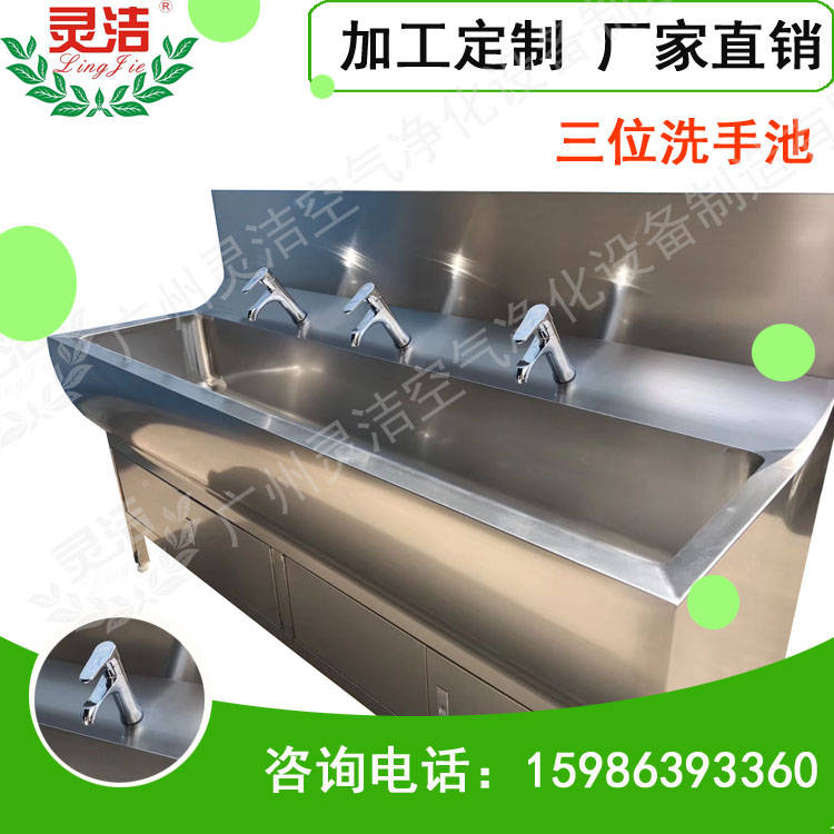 不銹鋼醫(yī)用洗涮池:采用進(jìn)口優(yōu)質(zhì)304不銹鋼板制造,國(guó)際標(biāo)準(zhǔn),園弧結(jié)構(gòu),恒溫出水,標(biāo)準(zhǔn)型號(hào)為1人、2人、3人洗手池,可定制非標(biāo)各類洗手池。說(shuō)明:不銹鋼材厚度為1.2mm或者1.5mm,自帶50L電熱水器,可自由設(shè)定出水溫度,出水分膝碰和感應(yīng)兩種方式,各水嘴獨(dú)立設(shè)置,不影響其它水嘴的使用,方便使用及維護(hù)。