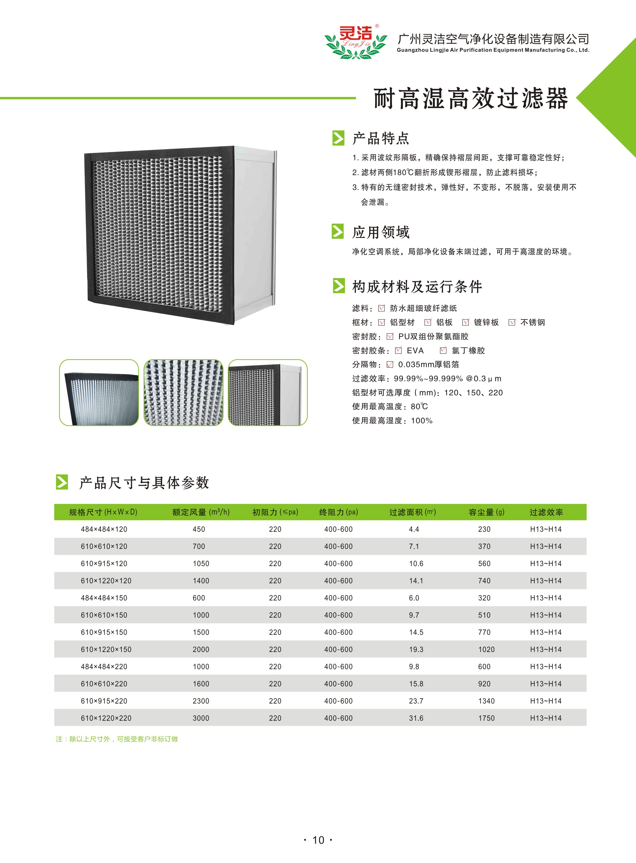 4)過濾等級:H11,H12,H13,H14(EN1882)
