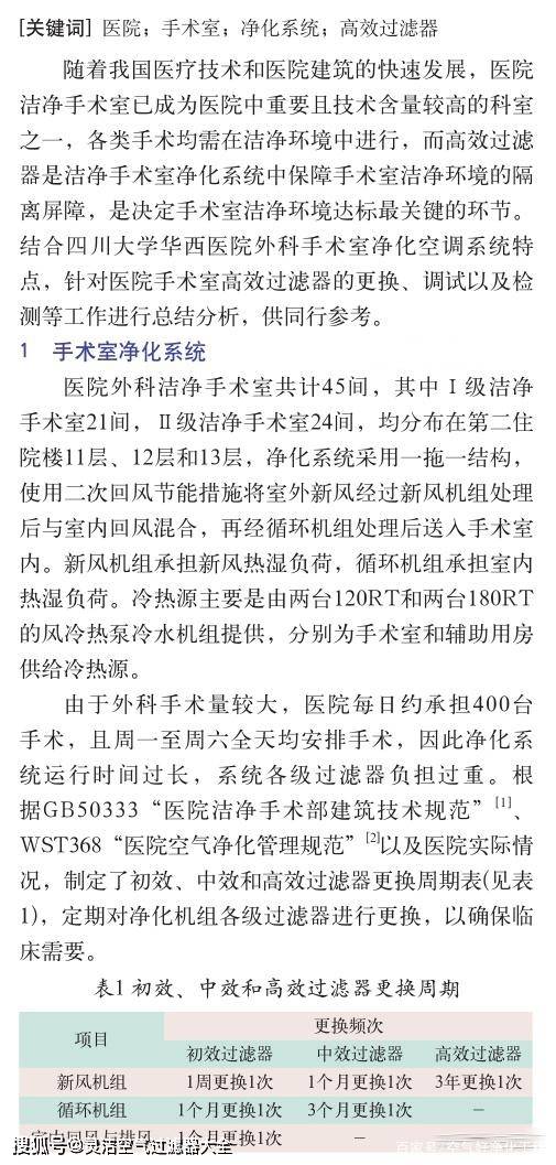 隨著我國醫(yī)療技術(shù)和醫(yī)院建筑的快速發(fā)展,醫(yī)院潔凈手術(shù)室已成為醫(yī)院中重要且技術(shù)含量較高的科室之一,各類手術(shù)均需在潔凈環(huán)境中進(jìn)行,而高效過濾器是潔凈手術(shù)室凈化系統(tǒng)中保障手術(shù)室潔凈環(huán)境的隔離屏障,是決定手術(shù)室潔凈環(huán)境達(dá)標(biāo)最關(guān)鍵的環(huán)節(jié)。